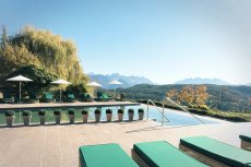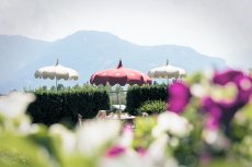 - Familien-Ruheraum mit ausgewählten Bilder- und Kinderbüchern, Blick auf den Park und die Südtiroler Bergwelt und direktem Zugang zur Liegewiese am Pool